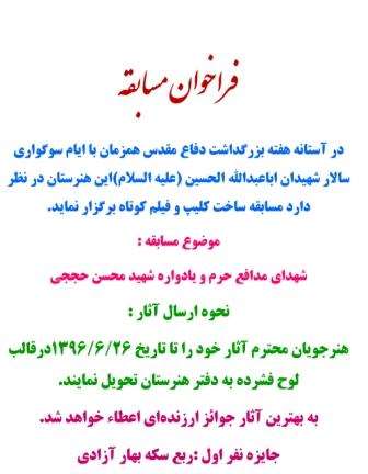 فراخوان مسابقه ساخت کلیپ و فیلم کوتاه با موضوع شهدای مدافع حرم و یادواره شهید محسن حججی