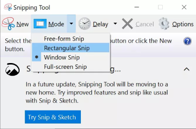 اینجاست که Snipping Tool در ویندوز 10 با نسخه های قبلی متفاوت است.