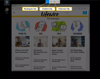 روی نوع تصویری که میخواهید ضبط کنید کلیک کنید. اگر می خواهید از یک کلیپ مستطیلی یا آزاد استفاده کنید، برای مشخص کردن منطقه مورد نظر برای گرفتن عکس، ماوس را کلیک کنید و بکشید. هنگامی که دکمه ماوس را رها میکنید، منطقه در کلیپ بورد شما ذخیره میشود.