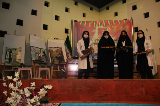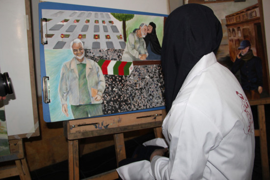 هنرجویان هنرستان در حاشیه برگزاری جشنواره استانی شعر مادرانه، چهره سردار دلها را روی بوم نقش زدند