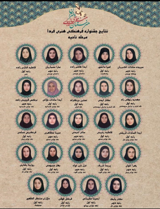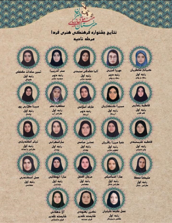هنرجویان هنرستان مقامهای برگزیده سی و نهمین دوره جشنواره فرهنگی هنری فردا
