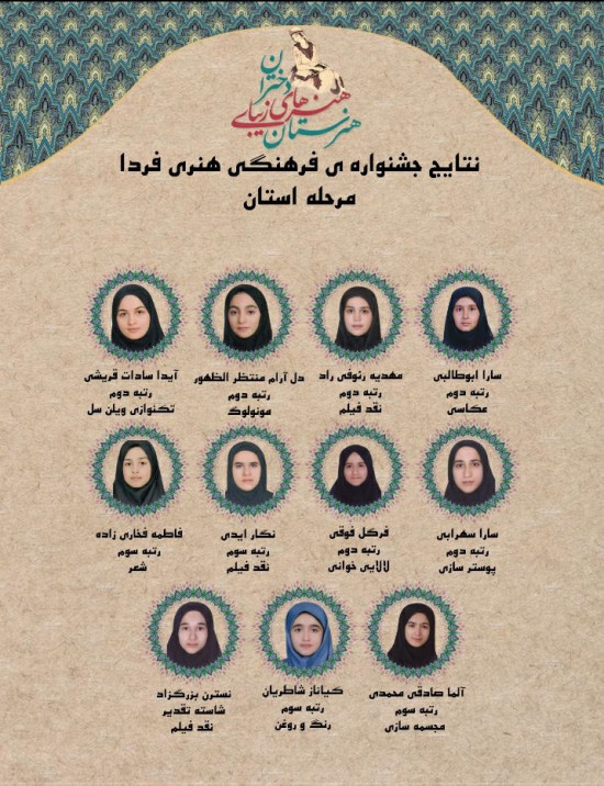 هنرجویان هنرستان مقامهای برگزیده سی و نهمین جشنواره فرهنگی هنری فردا را از آن خود کردند