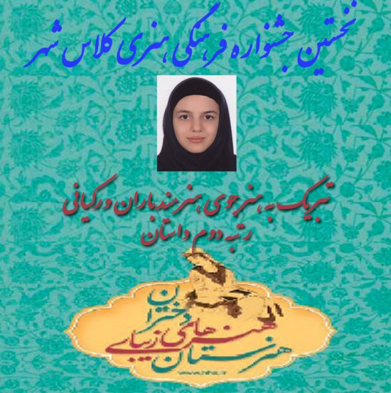 کسب رتبه برگزیده در نخستین جشنواره فرهنگی هنری کلاس شهر توسط هنرجو باران ورکیانی در رشته داستان