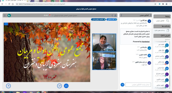 به گزارش روابط عمومی هنرستان هنرهای زیبای دختران، روز سه‌شنبه 27 مهر مجمع عمومی و انتخابات انجمن اولیا و مربیان هنرستان با حضور خانواده هنرجویان به صورت مجازی برگزارشد.