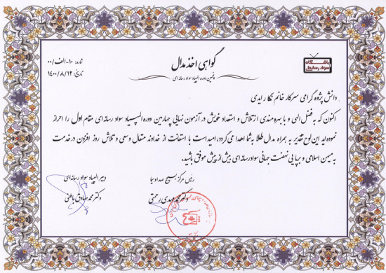 نگار ایدی مدال طلای پنجمین دوره المپیاد سواد رسانهای کشور را از آن خود کرد