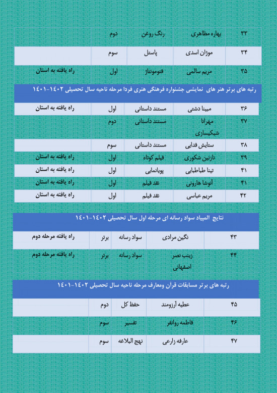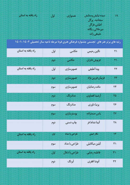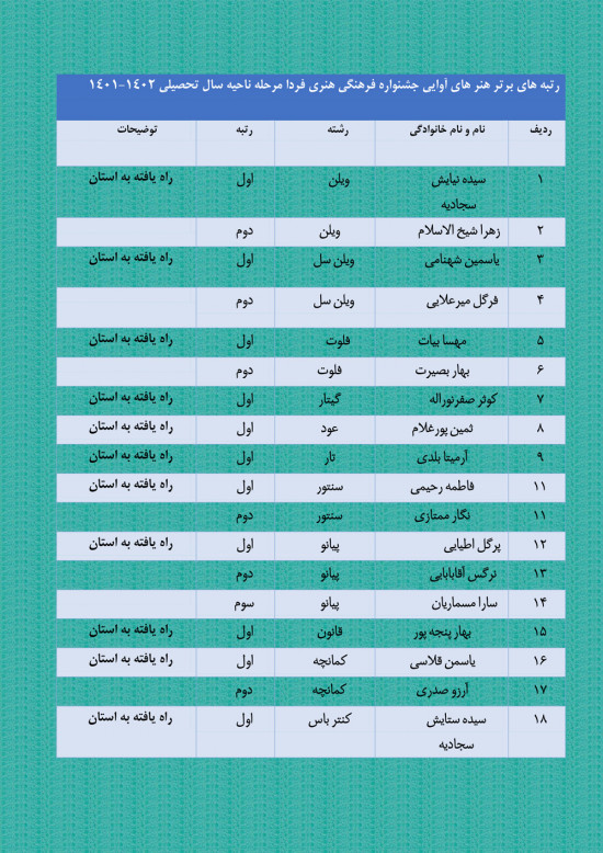 هنرجویان هنرستان 44 رتبه برتر مرحله ناحیه جشنواره فرهنگی هنری فردا را از آن خود کردند