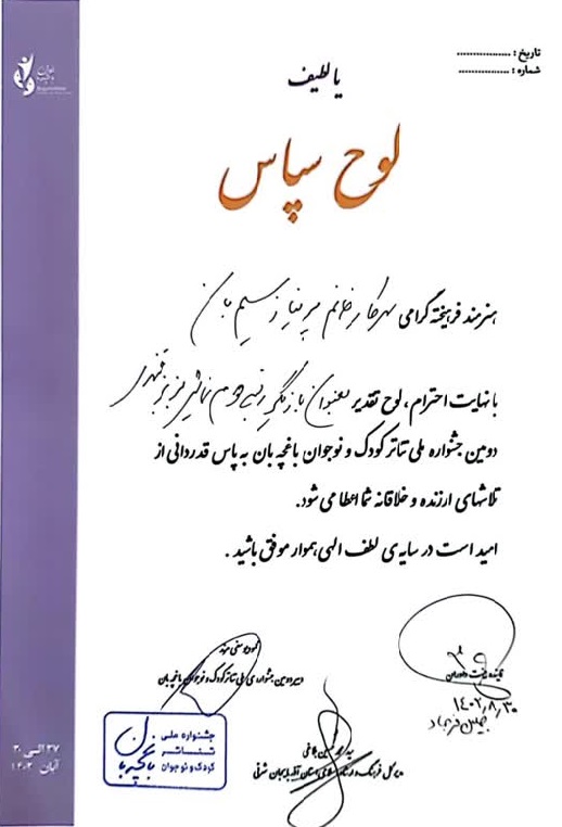 کسب رتبه دوم بازیگری در نمایش بزبز قندی توسط پریناز سیم‌بان