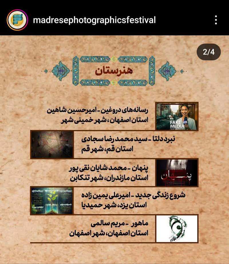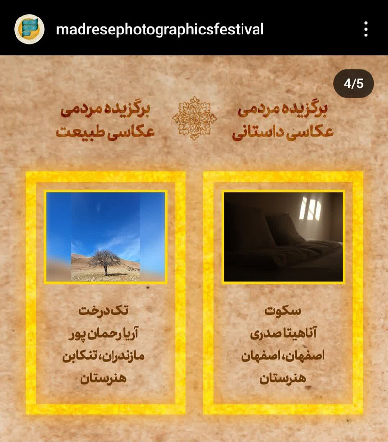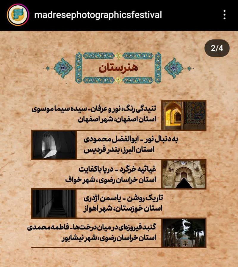 موفقیت شما را با عنوان برگزیدگان کشوری جشنواره عکس مدرسه به خانواده بزرگ هنرهای زیبا تبریک میگوییم.