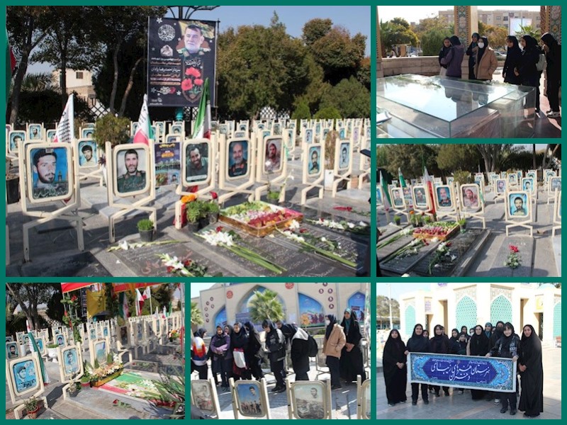 به گزارش روابط عمومی هنرستان هنرهای زیبای دختران، هنرجویان هنرستان روز چهارشنبه 30 آبانماه، به مناسبت هفته مبارک بسیج و ایام چهلمین روز شهادت سرلشکر شهید نیلفروشان و روز قهرمانان ملی با حضور در گلستان شهدای اصفهان و عطرافشانی و گلباران قبور مطهر شهیدان والامقام و قهرمانان ملی با آرمانهای شهدا تجدید میثاق کردند.