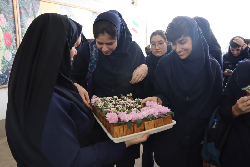 اهدای گل به هنرجویان به مناسبت 1 مهر و بازگشایی مدارس